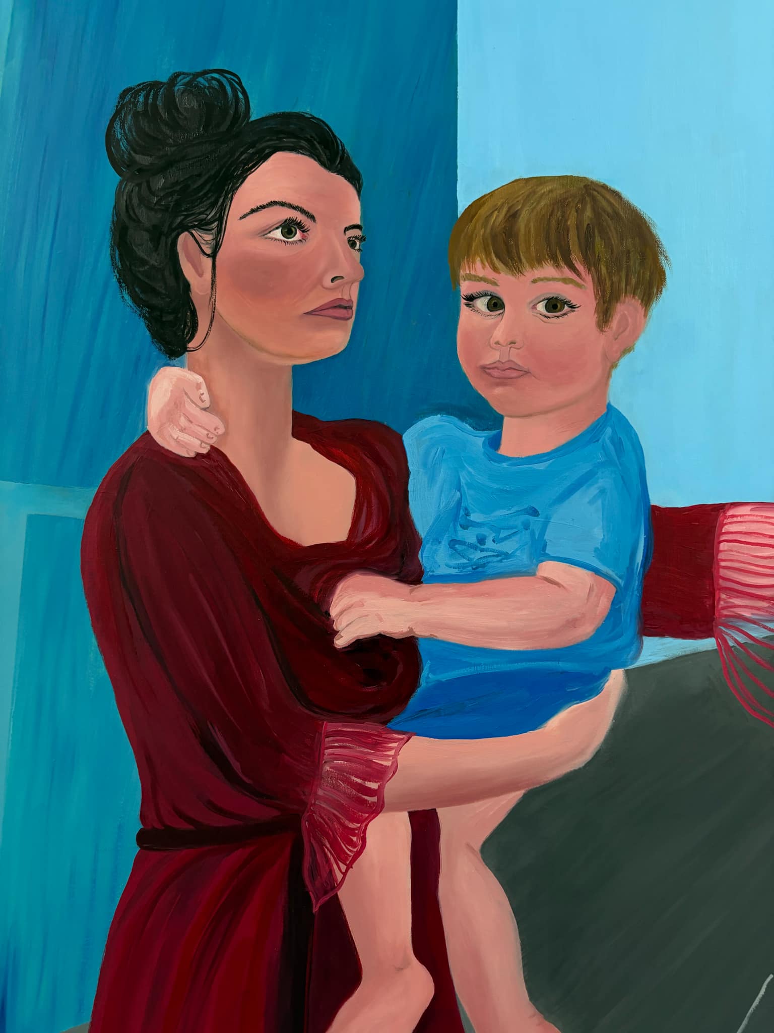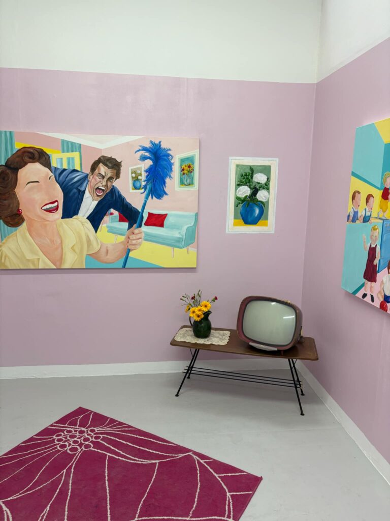 The BA show is a celebration of the work of current students as well as current work from fellows of the institution. It tends to be more circumscribed than the huge and quite zany foundation show in the spring and concentrates its efforts not only on painting, but fascinating shows of woodwork, restoration, stonework, and carving. Themes often dominate these shows, and this year’s themes appear to focus on impending doom/raucous celebrations. And there’s something about people who don’t have eyes, but we couldn’t exactly pin that one down.