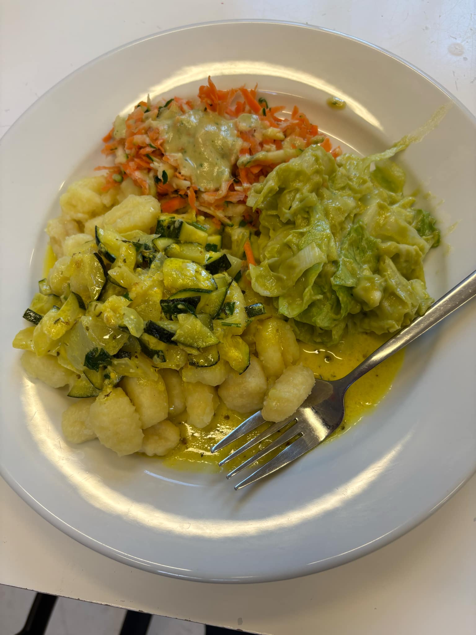 With our regular lunch partner Karen from Finance still under the effects of Manjourno, her sidekick Pippa decided to plump for the special of the day, which was gnocchi with courgettes. This turned out to be a good sized serving of plain potato gnocchi with a light cream sauce flavoured which was was served with two salads alongside on the plate. Pippa found the iceberg lettuce and avocado to be a bit bland but the shredded carrot with tahini was much more interesting. After calling her an ‘ingrate’ under our breath, we reminded Pippa that its nigh impossible for find a healthy lunch for £7 in Greater Kennington.