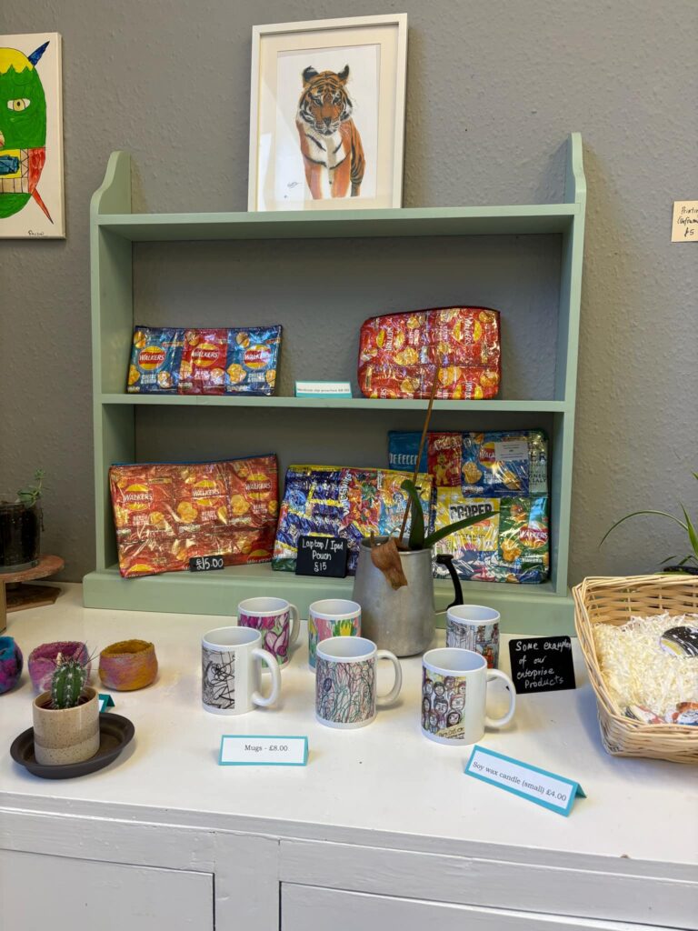 The Park cafe also has an adorable giftshop selling cards, paintings, coffee mugs, and handbags made from crisp bags. Because after all, in the parallel universe in which Tesco resides, Christmas is apparently just around the corner.