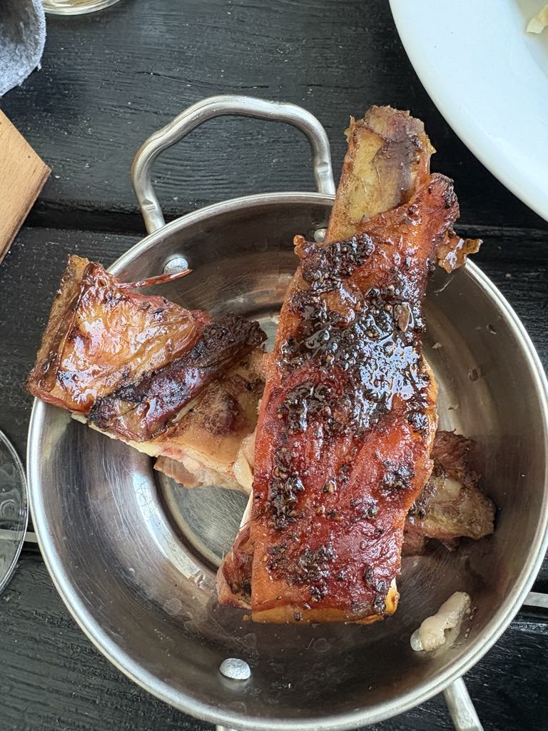 Your scribe and ‘office fun guy’ Phil from Accounts first ventured into the small plates section  by asking if Jager bombs count as a small plate. After being summarily kicked under the table, Phil ordered a pickles plate and some lamb ribs. The pickles were a mix of gherkin, carrot and radish; substantial rather than sliced and tasting home-prepared. They were sweet and sour and only gently acidic. This balanced quite well against the two fairly large lamb ribs that were as rich, fatty and lamby as you would hope.